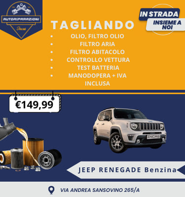 Verifica se la tua auto rientra nelle nostre offerte per il tagliando! Prezzi trasparenti, nessuna sorpresa. Contattaci e scopri le promozioni in corso. Alla riconsegna della vettura, ti mostreremo i ricambi sostituiti per garantire massima trasparenza.